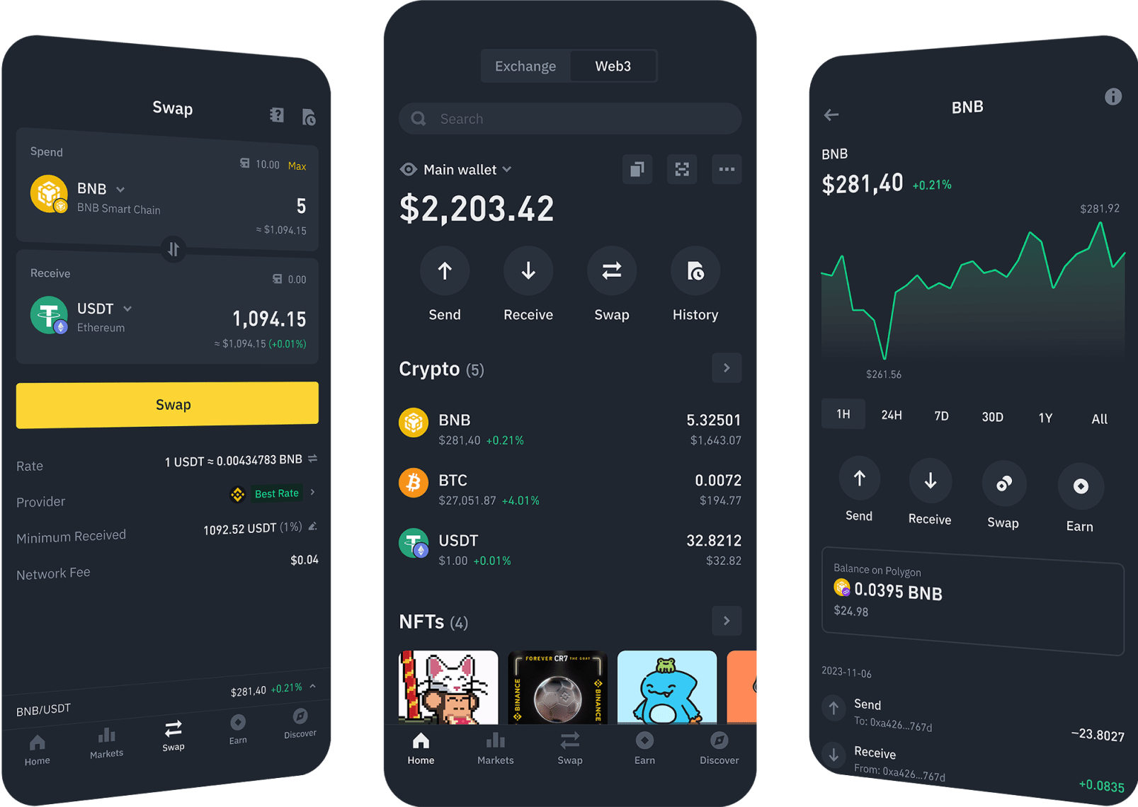 安全: 强大的多方计算(MPC)技术可监管每笔交易并减少单点故障,确保您的资产受到用户资产安全基金(SAFU)的保护。